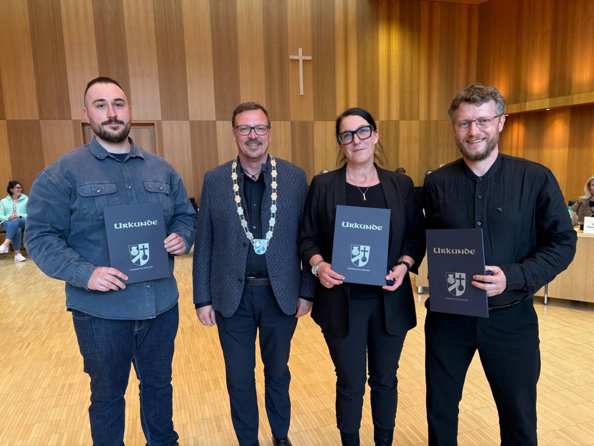 Im Rahmen einer Ehrungssitzung sind jüngst Mitglieder des Gemeinderats (2020 – 2026) feierlich verabschiedet und einige langjährige Mitglieder zudem ausgezeichnet worden. Bürgermeister Andreas Janson würdigte dabei insgesamt fünf ausscheidende Ratsmitglieder für ihr langjähriges Engagement in der Kommunalpolitik und überreichte ihnen als Anerkennung den sogenannten „Feldkirchner Löwen“ , Blumen sowie eine zugehörige Urkunde. Die Gemeinde Feldkirchen bedankt sich ganz herzlich bei Katharina Funk, Wolfgang Kellerer, Anneliese Oettrich Tanja Schmitt und Tobias Schmitt für das große Engagement in der vergangenen Legislaturperiode von 2020 – 2026.