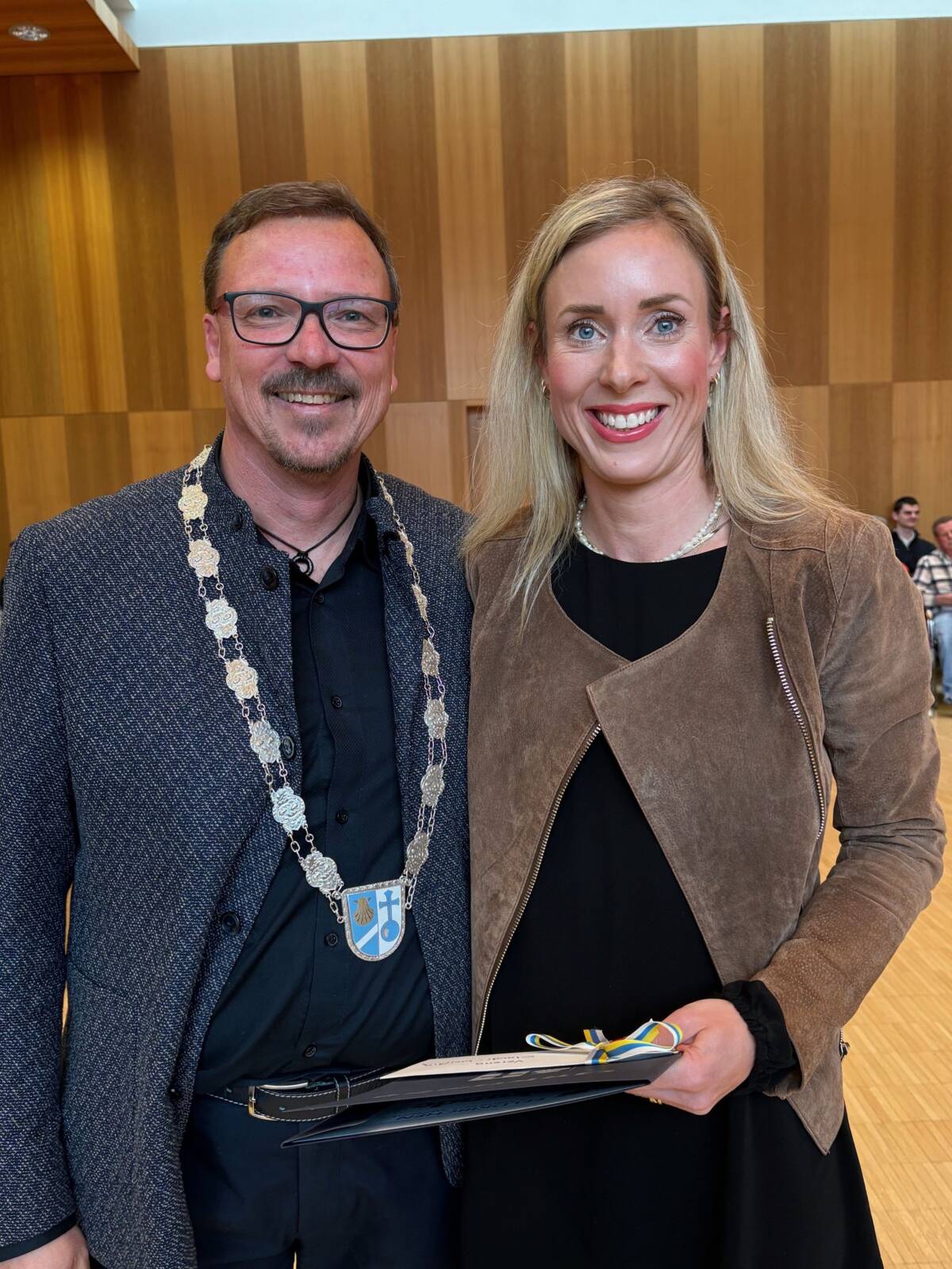 Besonders hervorgehoben wurden außerdem Bürgermeister Andreas Janson (ausgezeichnet vom 2. Bürgermeister Herbert Vanvolsem) und Michael Schön, die dem Gemeinderat bereits seit 18 Jahren angehören. Ihnen wurde die goldene Ehrennadel der Gemeinde verliehen.
