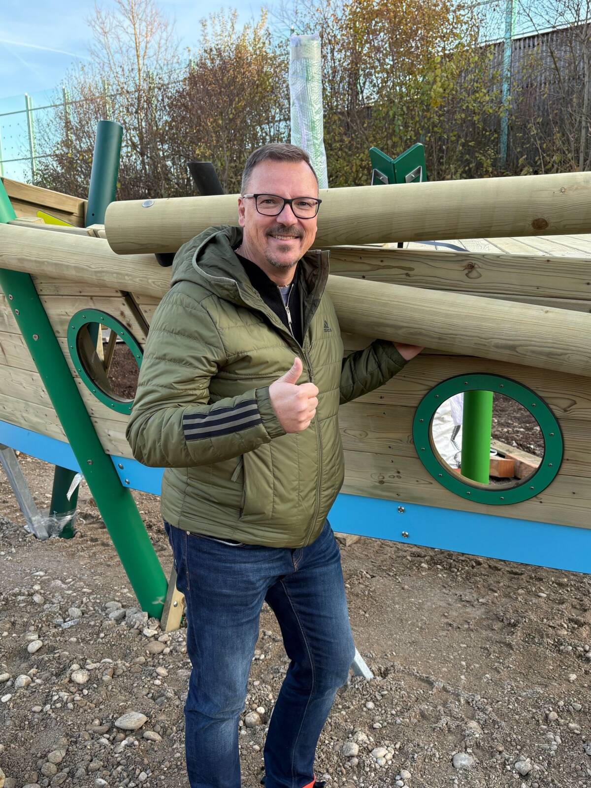 Bürgermeister Andreas Janson freut sich über die Baufortschritte des Projekts. "Noch ist zwar Baustelle, aber in wenigen Wochen kann hier geklettert, gespielt und getobt werden."