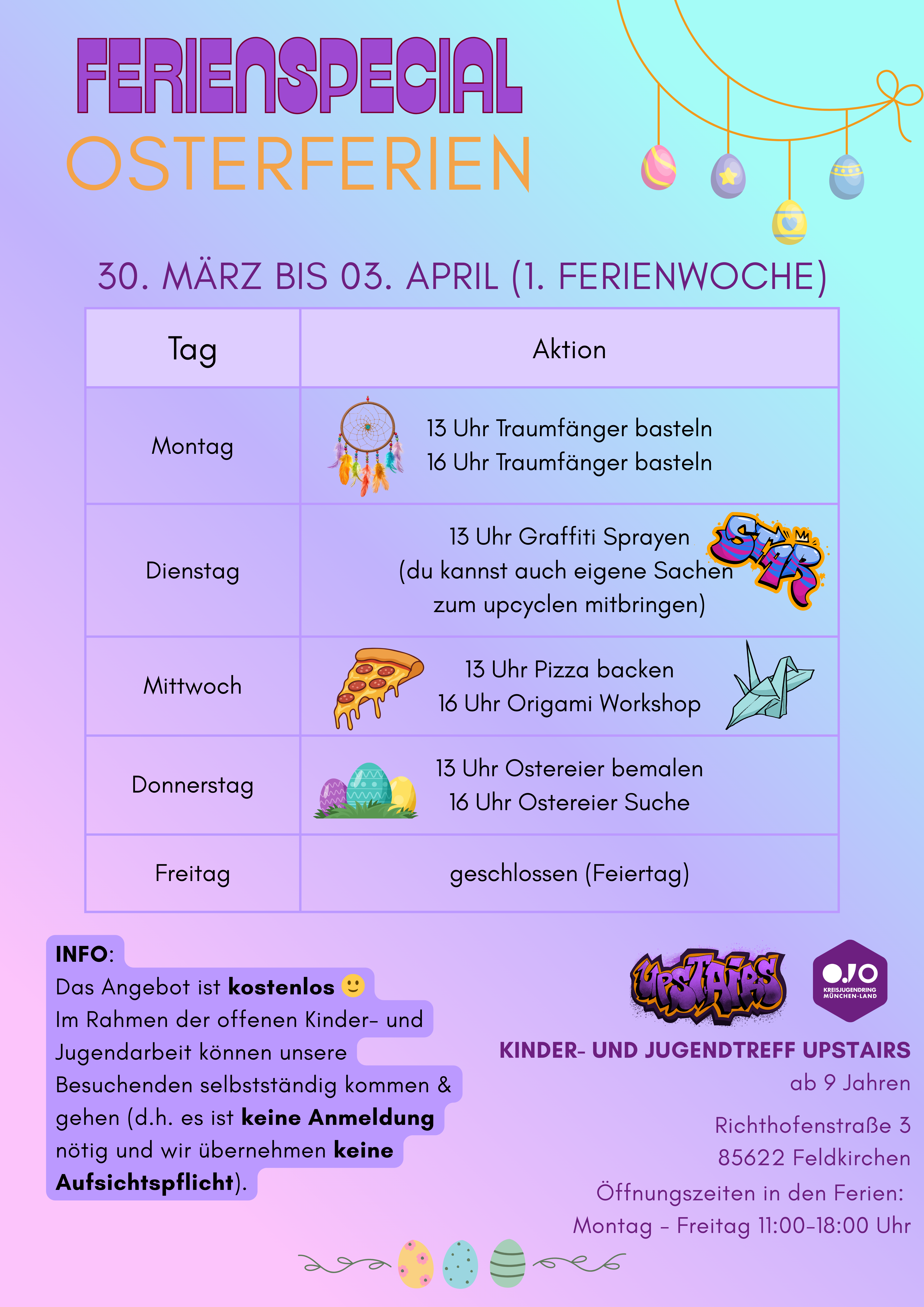 Das UPSTAIRS ist der Treffpunkt für Kinder, Jugendliche und junge Erwachsene im Alter von 9 bis 27 Jahren in Feldkirchen bei München.
